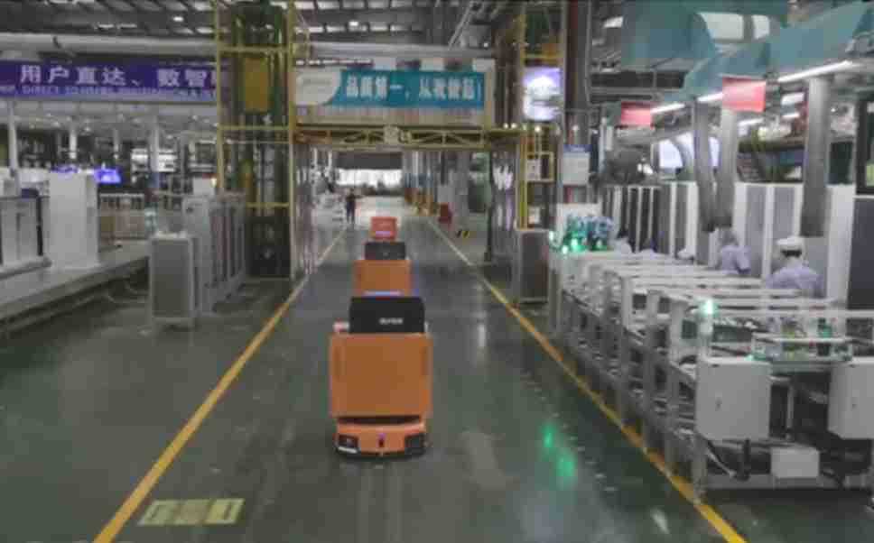 为车载冰箱物流配送打造的智能解决方案,,,包含产中物流通过潜伏举升AMR搬运至线边,,产后成品物流智能仓储,,,流程包含产中物流智能齐套入库,,,线边安灯叫料AMR智能配送至线边,,成品入库、、、出库,,,通过无人堆高车机器人,,,,智能仓储管理替代人工作业管理,,,实现更高存储、、更高效率、、更具柔性化的解决方案。。。